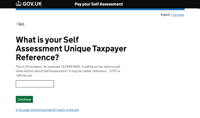 The next step is to enter your UTR (Unique Taxpayer Reference), so that HMRC knows which taxpayer’s bill is being paid: