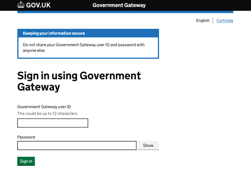 - Government Gateway ID (up to 12 characters)