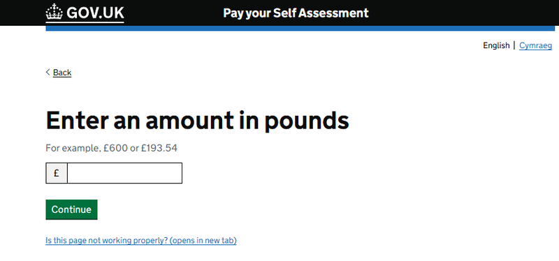 Next, enter the amount of tax owed (according to your Self Assessment tax calculation):